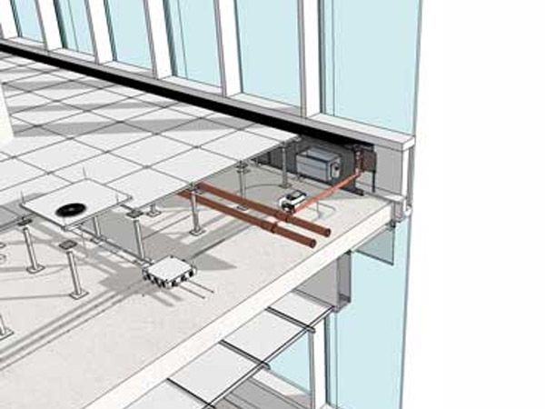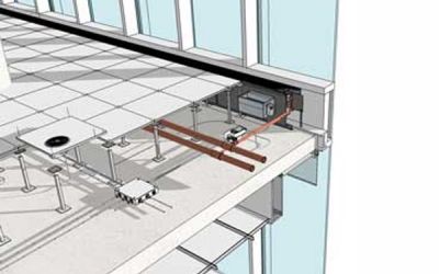 Raised access floorings are defined as a system of panels and supports that create a raised floor above the actual structural floor. By raising the floor up, a space is created in between the raised floor and the building structural floor where functional components like wiring for power, voice, and data can be routed and plumbing lines located. This space in between has also become increasingly valuable for heating, ventilation, and air conditioning (HVAC) distribution either as a plenum space or with defined ductwork. The United States Green Building Council (USGBC) has identified this type of HVAC system as a way to improve indoor air quality through their Leadership in Energy and Environmental Design (LEED) program.